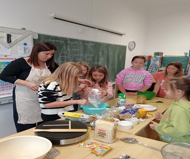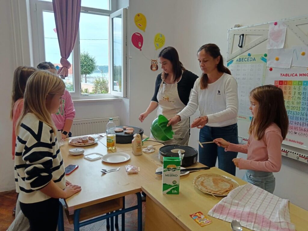 Učiteljice u PŠ Radovin provele su s učenicima nižih razreda i 5. razreda razne aktivnosti u sklopu kojih su pripremali palačinke od zobenih pahuljica s namazom od naribanih jabuka i oraha te topli napitak od biljnog čaja. Aktivnosti su provedene s ciljem promicanja zdravih prehrambenih navika i usvajanja pravilne prehrane među učenicima.