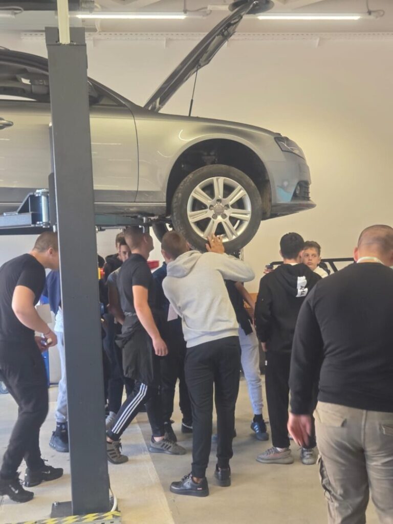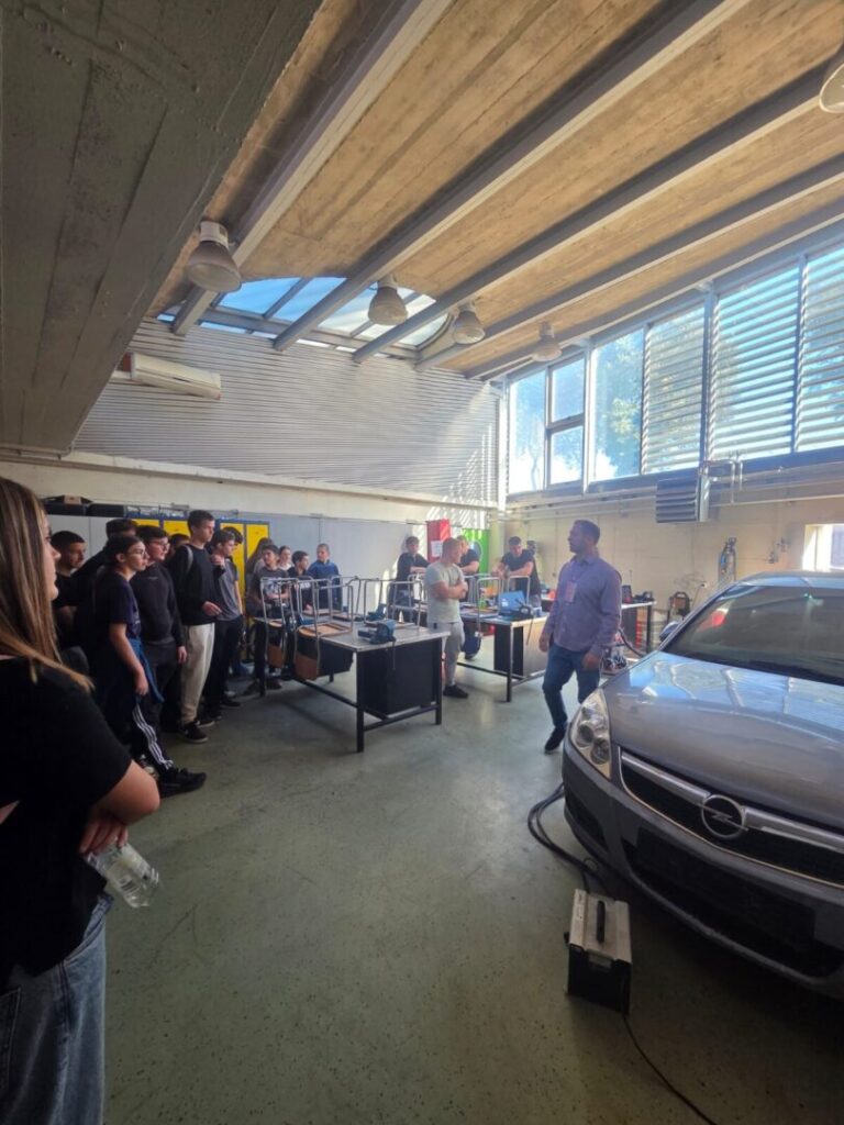 Na ulazu su nas dočekali domaćini – nastavnici i učenici Strukovne škole koji su preuzeli ulogu vodiča i proveli nas kroz različite školske odjele i radionice. Učenici su imali priliku upoznati se s programima i zanimanjima iz područja elektrotehnike, strojarstva, prometa, automehatronike i drugih uslužnih djelatnosti.
