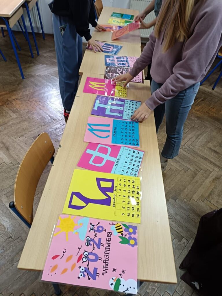 Učenici osmog razreda koji pohađaju izbornu nastavu Talijanskog jezika izrađivali su kalendar 2026. godine s talijanskim nazivima dana u tjednu i mjeseci u godini, a kao ilustracije kalendara su izradili inicijalna slova na glagoljici.