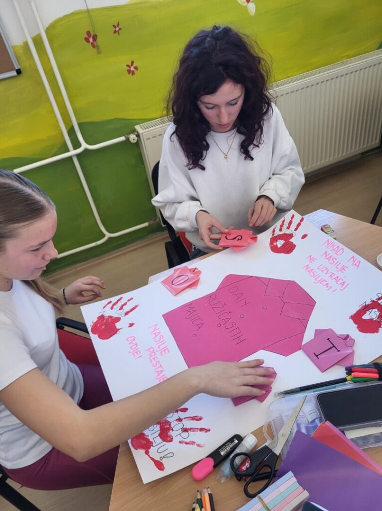 Obilježavanje je proteklo u ozračju zajedništva i suradnje. Psihologinja i edukacijska rehabilitatorica su s učenicama 8. razreda izradile prigodan pano te ispisivale poruke protiv nasilja. Učenice su kroz razgovor i kreativni rad promišljale o važnosti prihvaćanja različitosti, pružanja podrške vršnjacima i izgradnje sigurnog školskog okruženja u kojem se svatko osjeća vrijedno i poštovano.