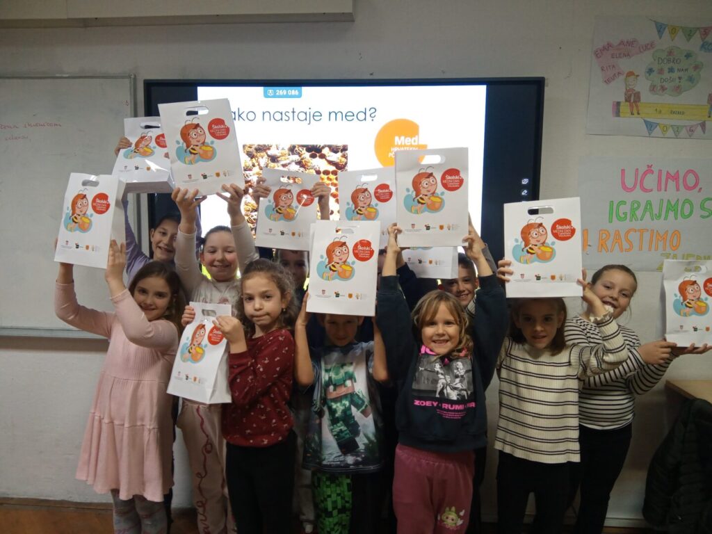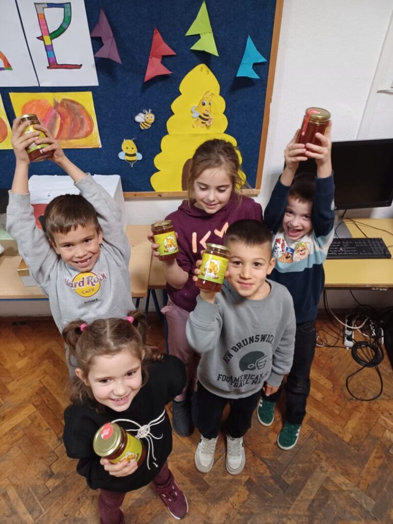 Učiteljice su sa svojim učenicima razgovarale o važnosti pčela za očuvanje prirode i života na Zemlji te o dobrobitima meda za zdravlje, s naglaskom na razvoj svijesti o brizi za okoliš od najranije dobi.